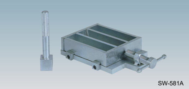 이 시험기는 수경성 시멘트의 휨 시험 및 압축 시험용 공시체 제작용 으로 사용하는 기기이다. <관련규격:KS L 3503, F 2477>