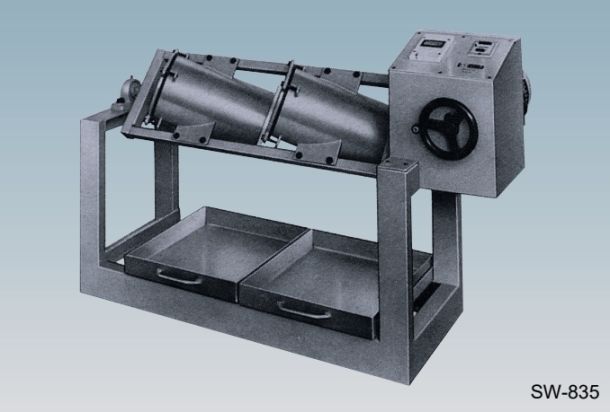 이 시험기는 골재의 마모시험을 하는 기기로서 한 번에 여러 종류의 시험을 동시에 할 수 있으며 자동 정지 장치가 부착되어 있다. <관련규격:KS F 2520/2521>