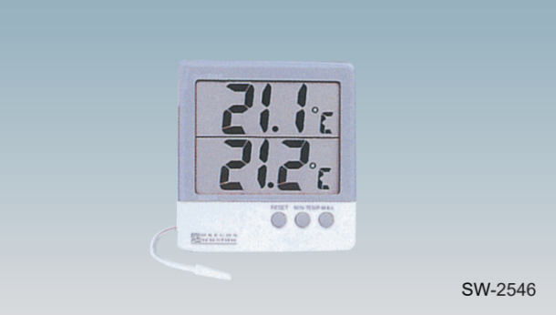 실내외 온도를 동시에 측정하며, 큰 액정화면에 지시하여 읽기가 쉽다.
