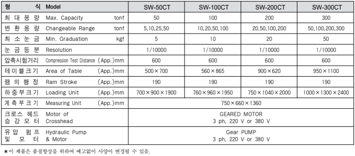 이 시험기는 압축 전용 재료 시험기로 하중값 및 변위량이 디지털로 표시되며 컴퓨터에 연결하여 계측된 각종 압축 시험의 성과를 입출력 할 수 있다. 부속 시험 장치를 연결하면 휨 강도 시험 등을 추가로 할 수 있으며 시험 상황을 수시로 확인할 수 있는 컴퓨터 압축 재료 시험기 이다.