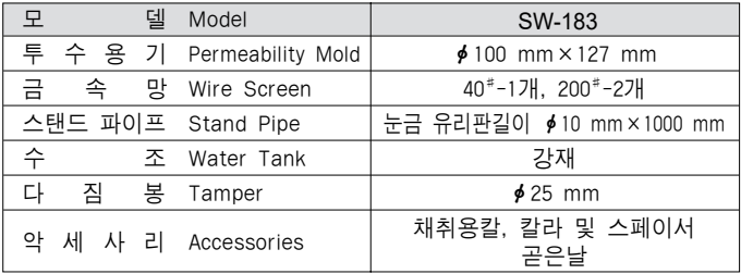 이 시험기는 흙의 투수계수를 간이적으로 시험하는데 쓰이며 투수계수가 작은 시료의 시험에 주로 사용한다