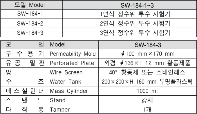 이 시험기는 흙의 투수계수를 결정하는데 쓰이며 투수계수가 큰 시료의 시험에 적합하다. 정수위 투수시험은 일정한 지름과 길이를 가진 시료속의 일정한 수위차에 의해 일정한 시간내의 침투되는 수량을 측정하는데 쓰이는 기기이다. <관련규격:KS F 2322>