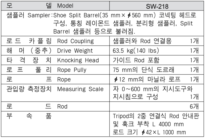 이 시험기는 Split Barrel Sample을 지반에 관입 그 저항치를 측정 하며 동시에 토질 분류 및 실내 시험을 위한 시료를 채취하는데 쓰이는 기기이다. <관련규격:KS F 2318>