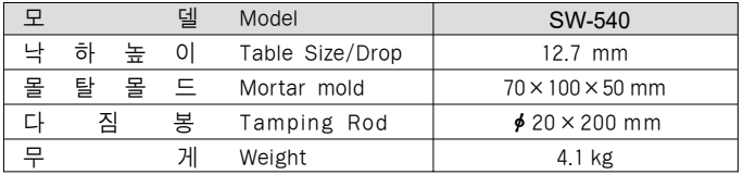 이 시험기는 수경성 시멘트 몰탈의 강도시험용 시험체 제작시 몰탈의 배합 주도를 결정하는데 쓰이는 기기이다. <관련규격:KS L 5111>