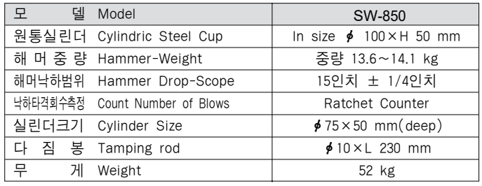 이 시험기는 골재의 충격에 대한 저항성 및 파쇄량을 측정하여 골재의 단단한 정도를 측정하며 충격저항과 정적 압축하중에 대한 저항성의 차이를 상대 비교할 수 있는 기기이다.