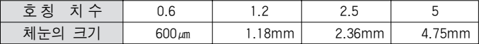 KS L 2512의 골재중에 함유되는 점토덩어리량의 시험방법에 규정된 시험을 하는데 필요한 것으로서 4종류의 체가 사용됨.