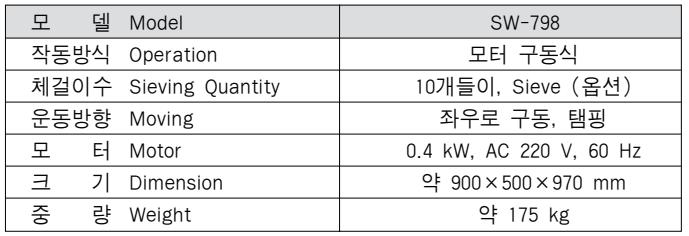 이 시험기는 Ro-Tap형 전동식 체가름기로 표준체를 원 운동하면서 상부에서 자동으로 두드려 주면서 시료 입자를 편리하게 구할 수 있다 <관련규격:KS F 2502>