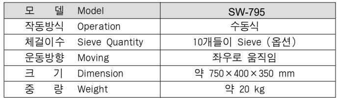 이 시험기는 수동식 체가름 시험기로 체눈이 큰 것부터 순서로 한 벌의 체(약 10개)를 올려 놓고 손으로 돌려 시료를 입자별로 구분 할 때 쓰인다. <관련규격 KS F 2502>