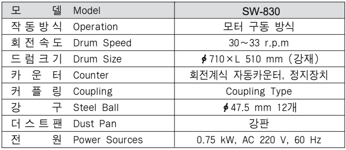 이 시험기는 철구를 사용하여 굵은 골재(부서진돌, 깨진 광재, 자갈등)의 마모에 대한 저항을 시험하는데 사용하며 암석을 여러가지의 크기로 대략 입방형이 되도록 손으로 깨어 시료를 만들어 시험 하였을 때 마모에 대한 손실은 쇄석기에 의하여 깬 동질의 부서진 돌의 마모에 대한 손실의 약85%정도이다. 도로 포장용 콘크리트 및 댐용 콘크리트 등 골재의 마모저항이 필요 할 경우 골재가 강한 것이라야 한다. 조골재의 마모감량은 적을수록 콘크리트의 마모감량이 적으며 조골재의 마모시험은 콘크리트의 마모 저항의 우열을 결정할 수 있다. 자동 정지 장치가 부착되어 편리하게 사용 될 수 있다.