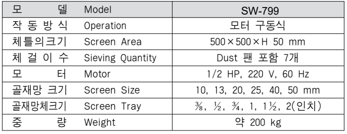 이 시험기는 콘크리트용 골재를 큰것부터 순서로 한벌의 체(6개)를 올려놓고 전동으로 흔들어서 골재를 크기별로 구분할때 쓰이는 기기이다.