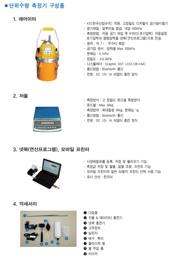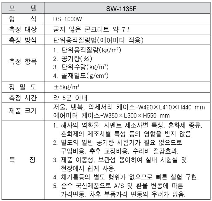 - 별도의 공기량 시험기가 필요하지 않으므로 구입비 절감