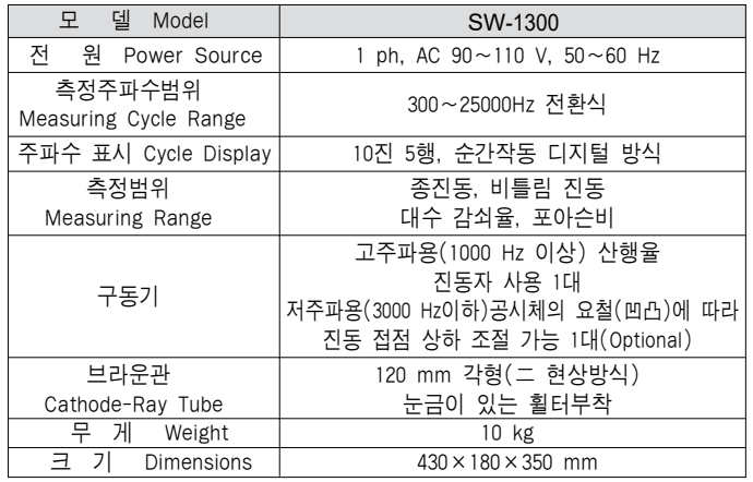 이 시험기는 몰탈, 콘크리트, 석재, 토질, 아스팔트, 유리, 연와, 슬레 이트, 각종 금속, 프라스틱 등 공시체에 음향적 시험방법에 따라 공진 주파수를 측정하여 각 재료의 동탄성계수(Young\'s 계수), 전단탄성 계수, 동포아슨비를 비파괴로 측정하며 또는 공진곡선에서 대수 감쇠율도 측정, 가능한 시험기로 이 측정에 따라 재료의 강도, 균열, 깨짐 등을 측정 재료의 품질 관리, 동결 융해 시험, 약품의 침식에 의한 재질의 변화를 측정하는 기기이다.