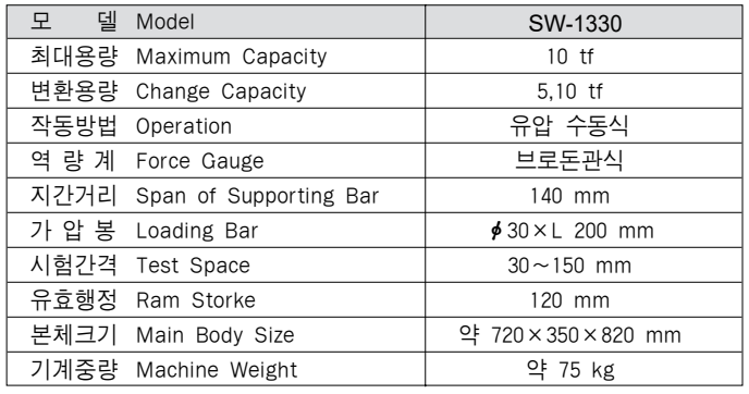 이 시험기는 보·차도용 콘크리트 인터로킹 블록의 휨강도를 측정하는데 쓰이는 기기이다. <관련규격:KS F 4419>