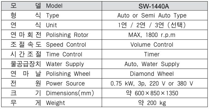 이 시험기는 콘크리트 원형 사각, 원심력 공시체의 표면을 연마하여 시험시 편심 하중을 방지하기 위하여 제작된 자동식 공시체 연마기이다.