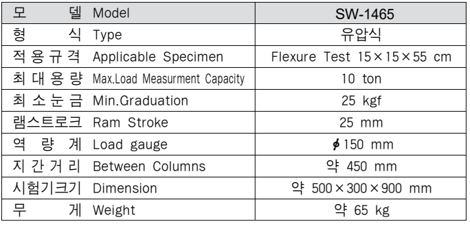 이 시험기는 휨강도 전용으로 제작되어 조작이 간단하고 편리하며 소형·경량이므로 실험실 및 현장에서 사용하기가 매우 편리한 기기이다.