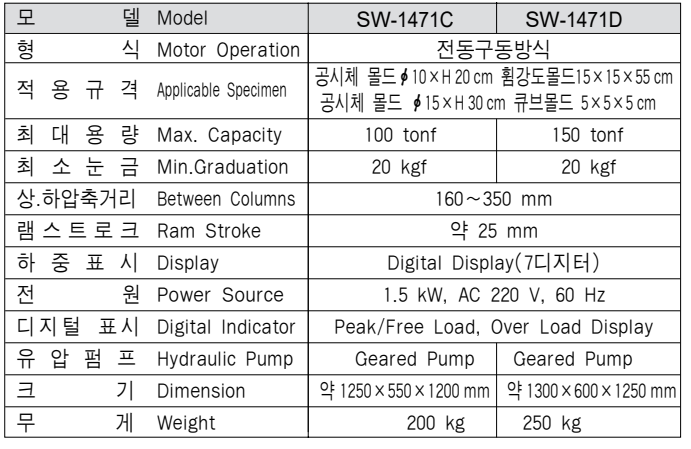 이 시험기는 디지털 전동식으로 구성되어 있으며 본체 계측부에는 One Touch Load Value가 부착되어 있어 사용자가 손쉽게 조작 할 수 있고 인디케이터 기능에는 환산 기능이 있어 사용하기 편리하다.