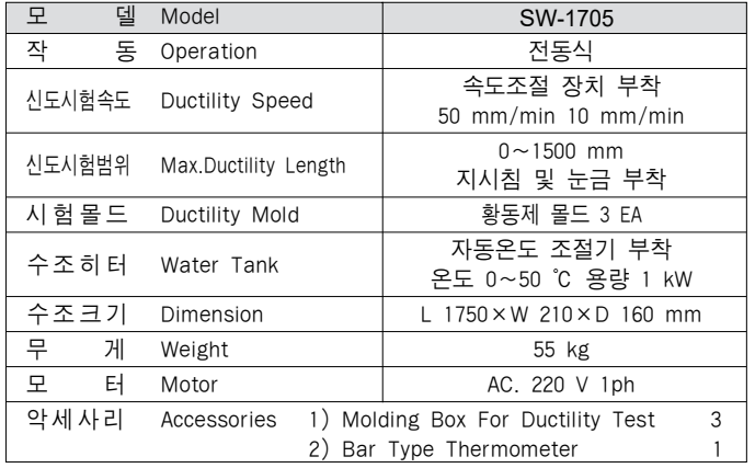 이 시험기는 역청 재료의 신도를 측정하는데 쓰인다. <관련규격:KS M 2254>