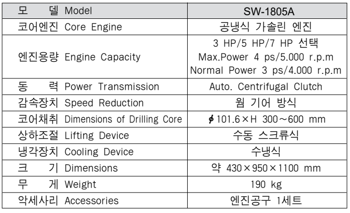 이 시험기는 콘크리트 포장 및 아스팔트 포장의 시험 검사용 코어를 채취 할때 쓰인다.