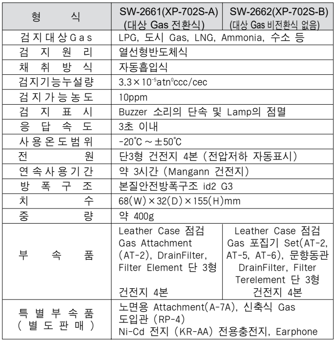 • 약간의 Gas 새는 것을 검지하는데 적합하다. • Gas 새는 것을 Lamp와 Buzzer로 알린다. • 도시 Gas, LP Gas의 보안, 보수 점검에 최적하다.