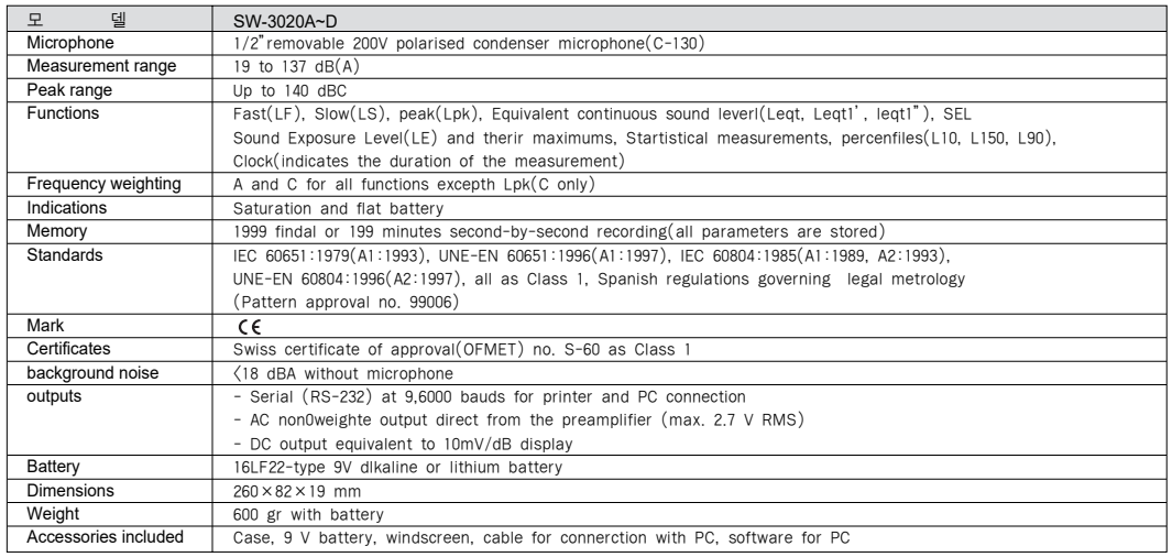 120Bd의 넓은 동적범위를 갖추고 있어 기존의 소음계처럼 측정범위를 조절할 필요가 없으므로 초보자도 쉽게 측정할 수 있다.
